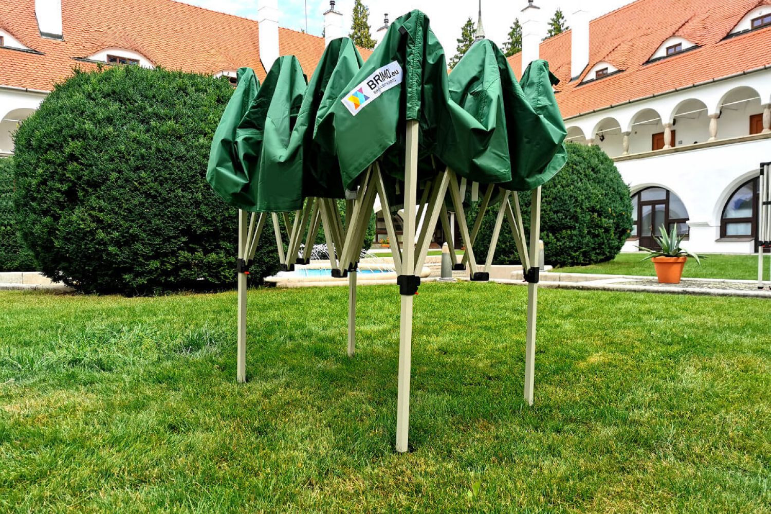 - Gesamthöhe: Dank der imposanten Höhe von 310 bis 340 cm wird Ihr Zelt auch aus großer Entfernung nicht zu übersehen sein. Dies garantiert eine hervorragende Sichtbarkeit Ihrer Präsentation und Ihres Logos auf jedem Event.