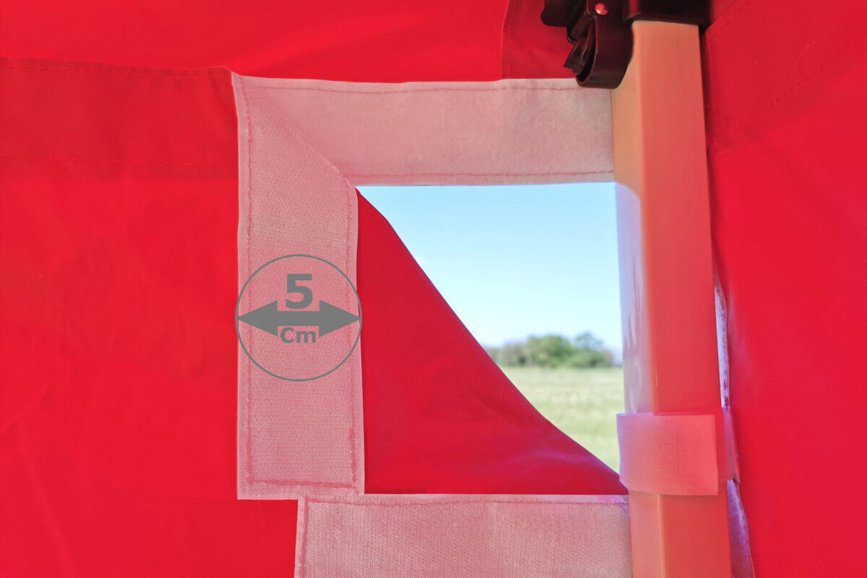 Unser leichtes Stahlzelt überzeugt durch enorme Stabilität. Bei korrekter Verankerung trotzt es Windgeschwindigkeiten von bis zu 40 km/h. Das clevere Automatik-Arretierungssystem macht den Aufbau zum Kinderspiel – ohne Kraftaufwand rastet das Gestell sicher ein. Die Seitenwände werden mittels breiter Klettverschlüsse winddicht befestigt, was für maximalen Komfort im Inneren sorgt.